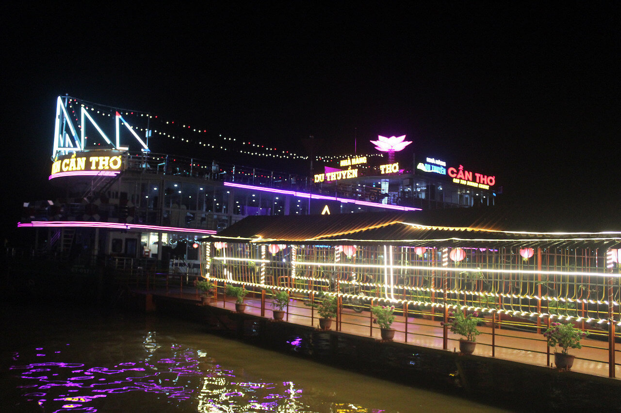 As the night fell,the city lights reflected on the river,creating a magical view. The cruise offered a different perspective of Can Tho,showcasing its beauty in a unique way. The illuminated Ninh Kieu Wharf and the sparkling lights of the bridges added a touch of enchantment to the night.