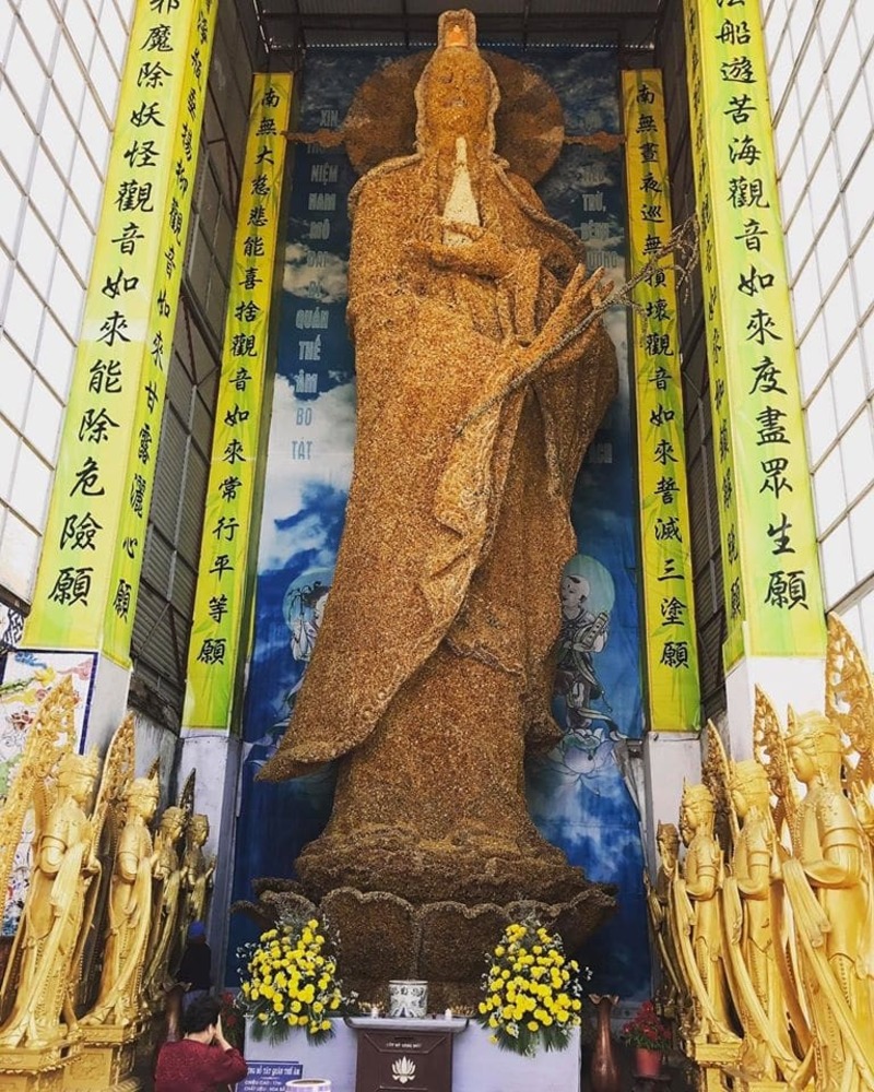 Tượng Quan Thế Âm Bồ Tát làm từ 650.000 bông hoa bất tử