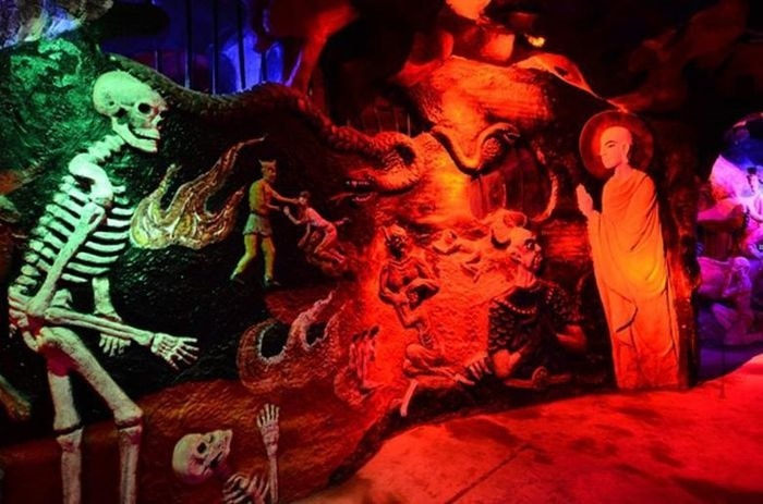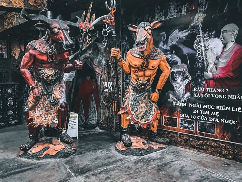 Một trải nghiệm không thể bỏ qua là khu 18 tầng địa ngục,dài 300m. Tại đây,du khách được tìm hiểu về nhân quả,nghiệp báo,sự hiếu thảo và những hình phạt ghê rợn để giác ngộ bài học sống. Đây vừa là trải nghiệm văn hóa,vừa mang giá trị giáo dục nhân văn sâu sắc.